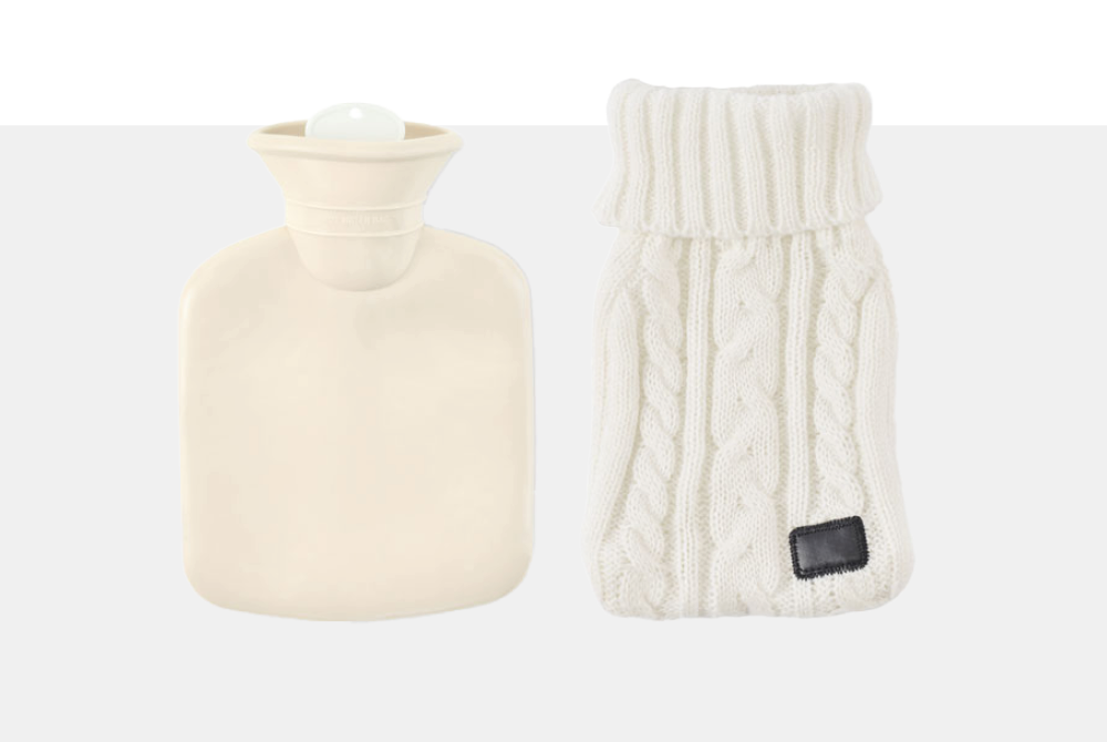 Borsa dell’acqua calda con custodia in acrilico lavorato a maglia per fornire calore, o scaldarsi.