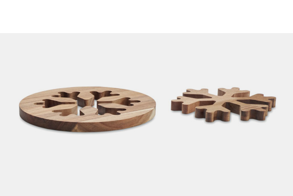 I due sottopentola in legno di acacia con disegno di fiocco di neve offrono un eccellente isolamento dal calore, in modo che le superfici di lavoro e anche il tavolo da pranzo siano protetti. Diametro 22 cm